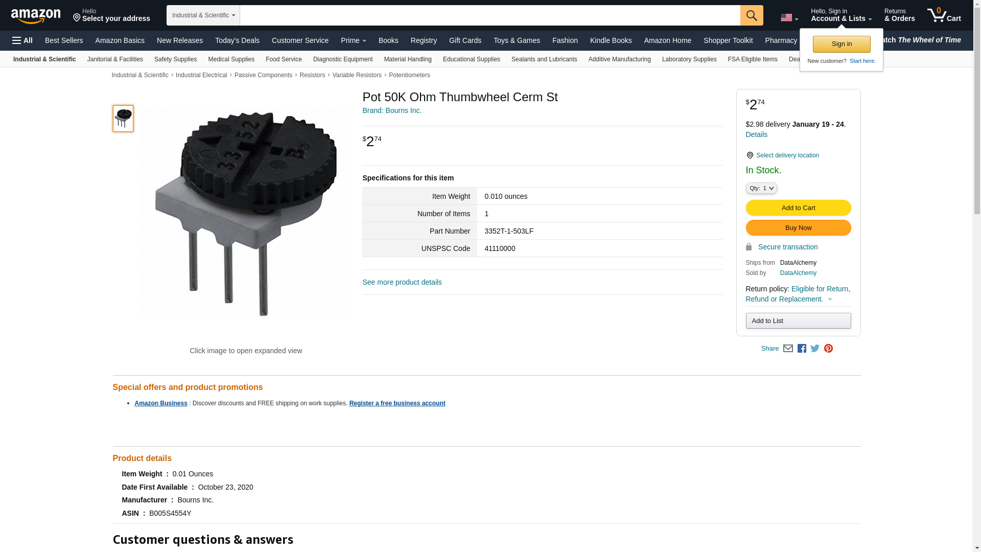 POT 50K OHM THUMBWHEEL CERM ST (1 piece)