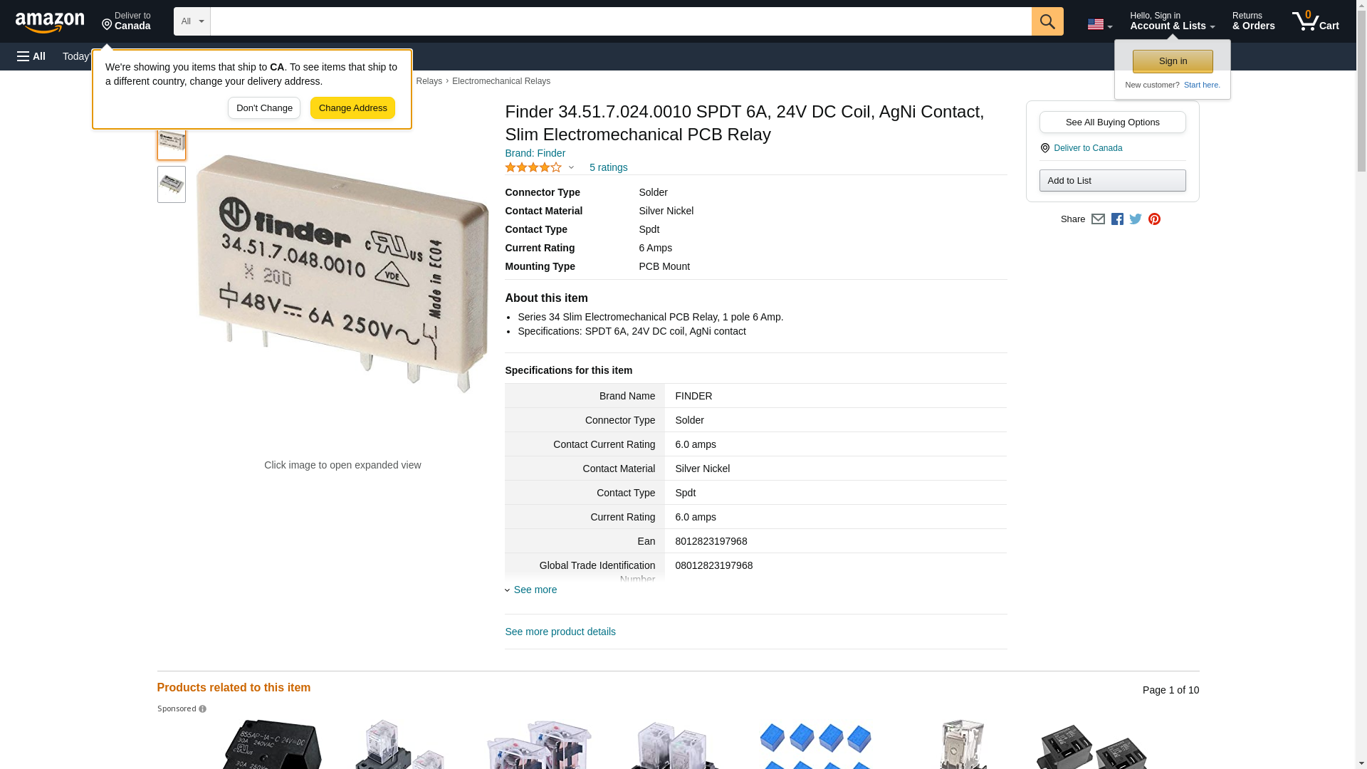 Series 34 Slim Electromechanical PCB Relay, 1 pole 6 Amp. Specifications: SPDT 6A, 24V DC coil, AgNi contact.