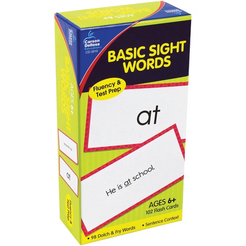 Carson-Dellosa CD3910 Flash Cards, Basic Sight Words, 3w x 6h, 102/Pack