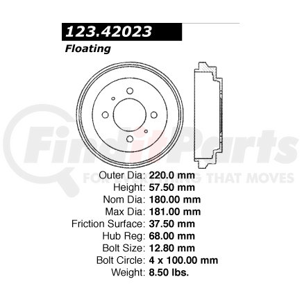 Centric Parts 123.42023 C-Tek Standard Brake Drum