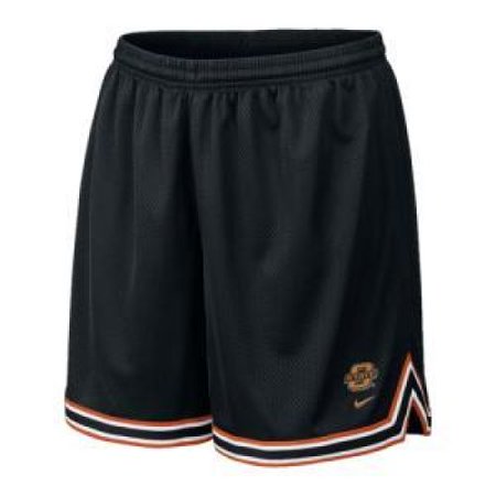 100% polyester women's mesh basketball short by Nike. Features tricot lining and five-color striped tape at hem. Embroidered team logo stacked over a Nike swoosh at lower left hem. PLEASE NOTE: Nike woman's clothing is junior sizing.
