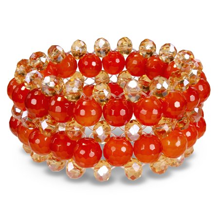 <ul> <li>Style: Elastic bracelet</li> <li>Gemstone colors: Orange, yellow</li> <li>Gemstone shapes: Round bead</li> </ul>