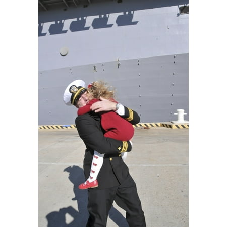 February 7 2012 - US Navy Commander hugs his daughter during the homecoming for amphibious assault ship USS Bataan at Naval Station Norfolk Virginia Poster Print