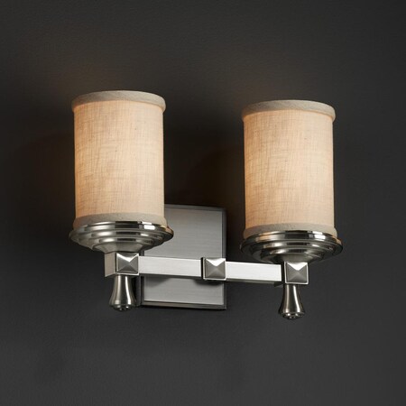 Justice Design Group Lighting FAB-8532-10-CREM-NCKL Textile Deco 2-Light Bath Bar Cylinder with Flat Rim Brushed Nickel Finish and Cream Fabric Shade