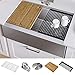 KRAUS Kore Workstation 33-inch Farmhouse Flat Apron Front 16 Gauge Single Bowl Stainless Steel Kitchen Sink with Integrated Ledge and Accessories (Pack of 5), KWF410-33