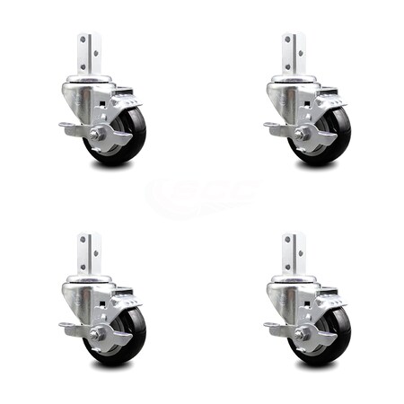 Swivel Square Stem Caster Set 4 w/3.5” x 1.25” Black Poly Wheel - 3/4” x 2” Square Stem with (3) 17/64” Diameter Mounting Holes - Includes 4 Top Lock Brakes-1200lbs. Cpty/Caster - Service Caster Brand