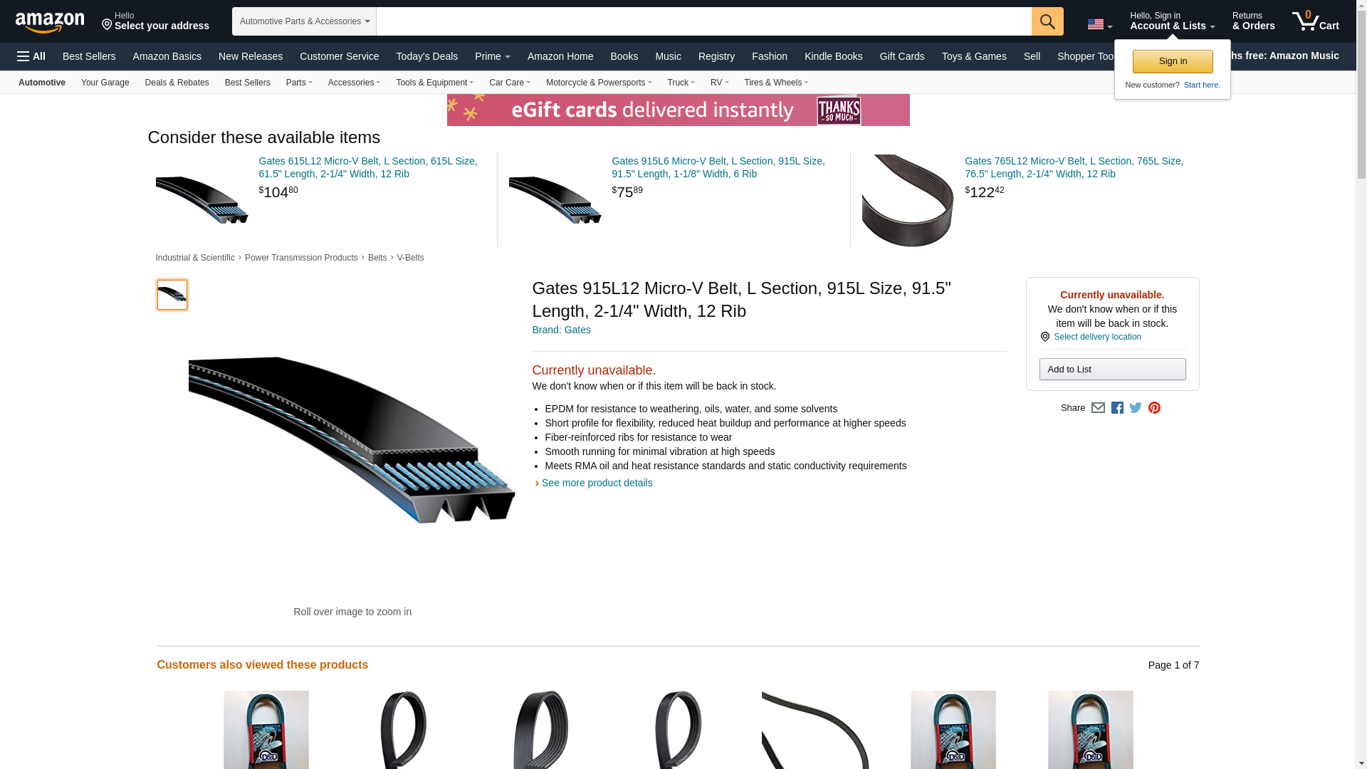 Gates 915L12 Micro-V Belt, L Section, 915L Size, 91.5" Length, 2-1/4" Width, 12 Rib