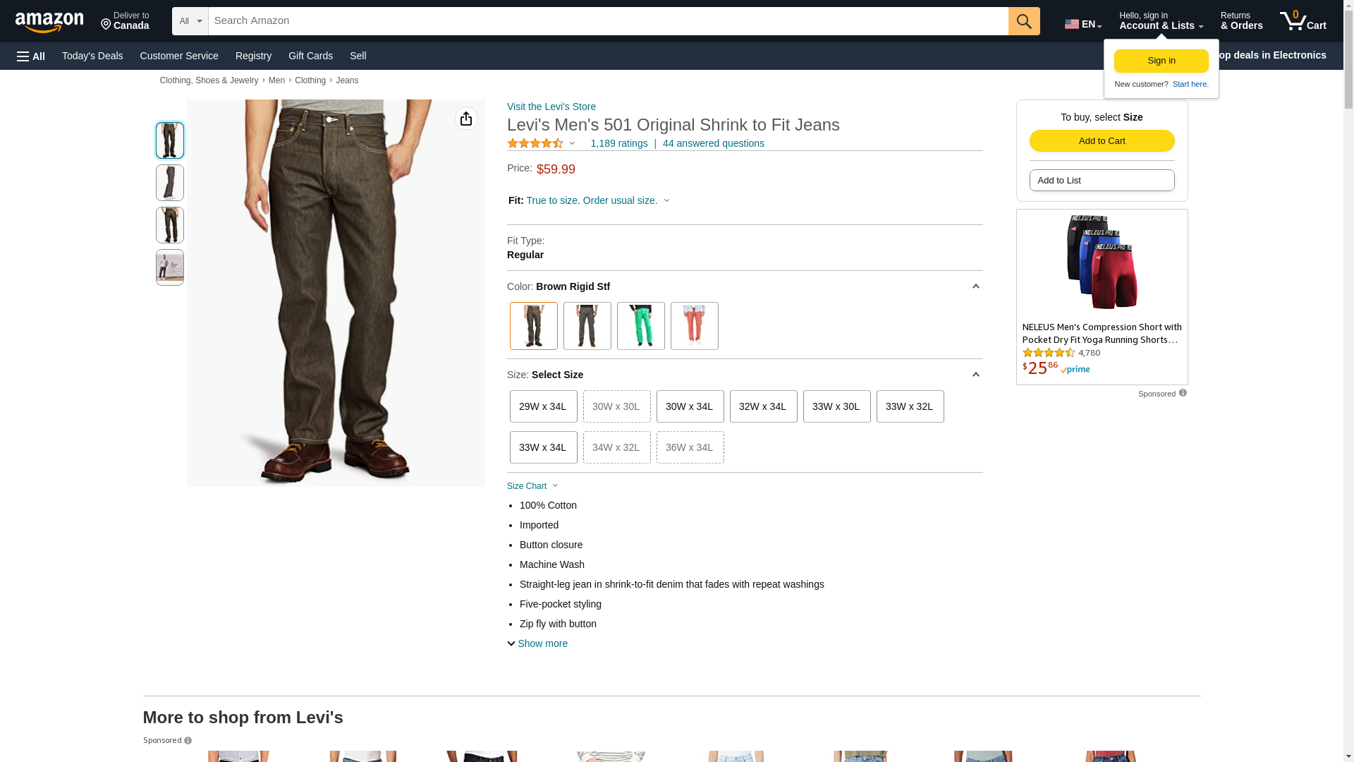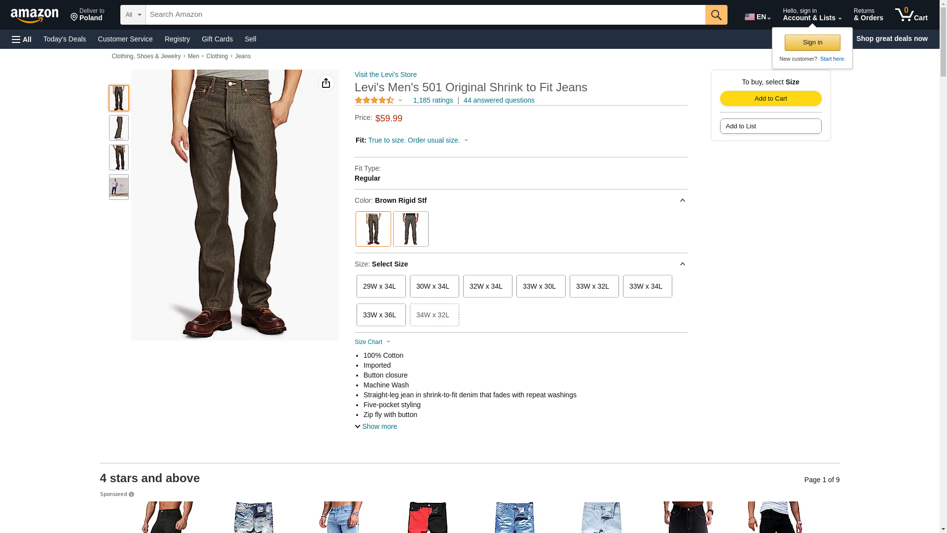 Levi's Men's 501 Original Shrink-to-Fit Jeans (Legacy), Compost-STF, 34W x 30L