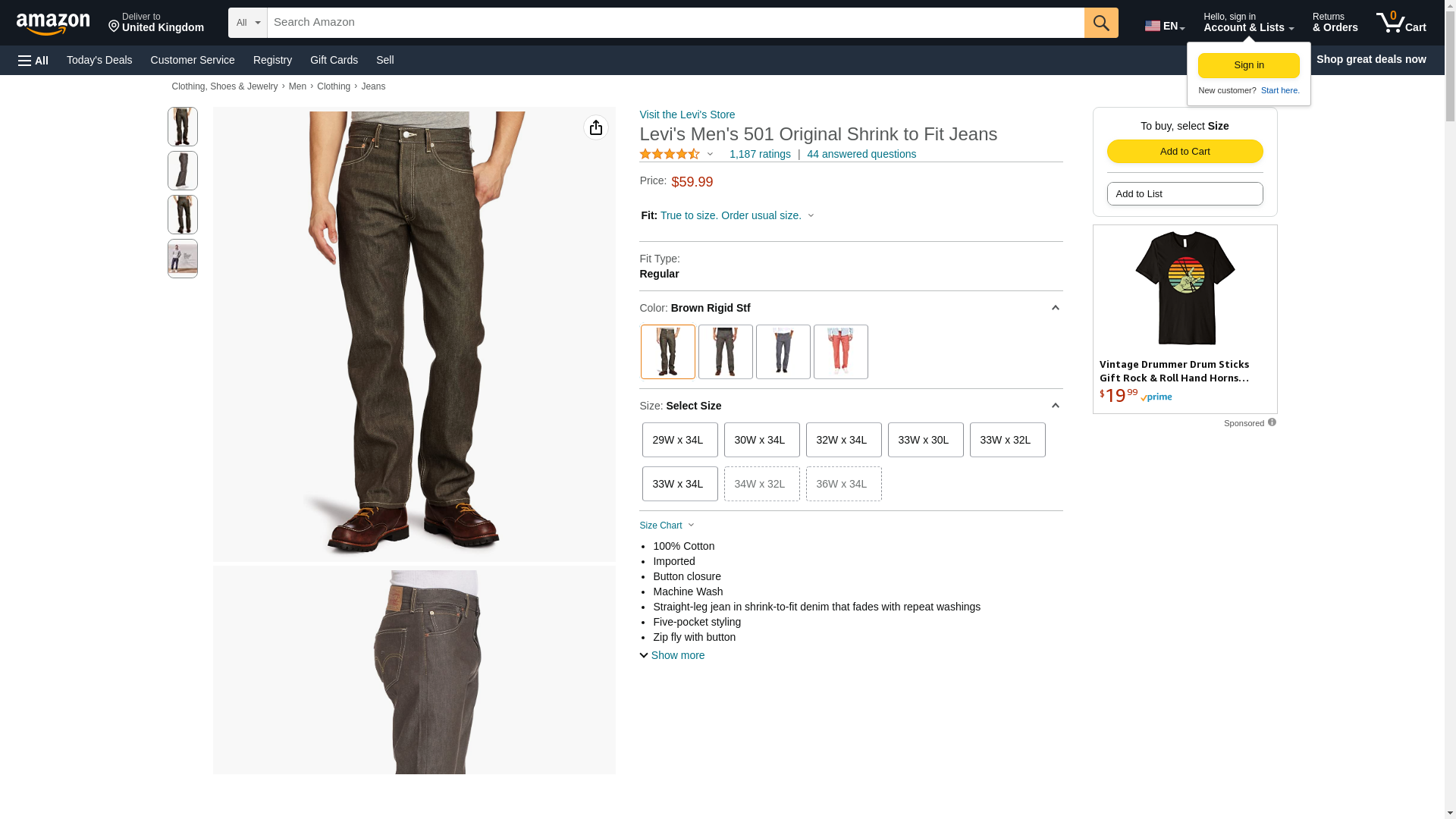 Levi's Men's 501 Original Shrink-to-Fit Jeans (Legacy), Compost-STF, 34W x 36L