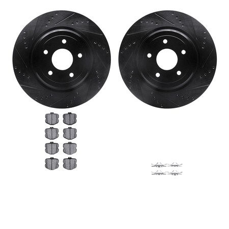 8512-47017, Rotors-Drilled and Slotted-Black w/ 5000 Advanced Brake Pads incl. Hardware, Zinc Coated