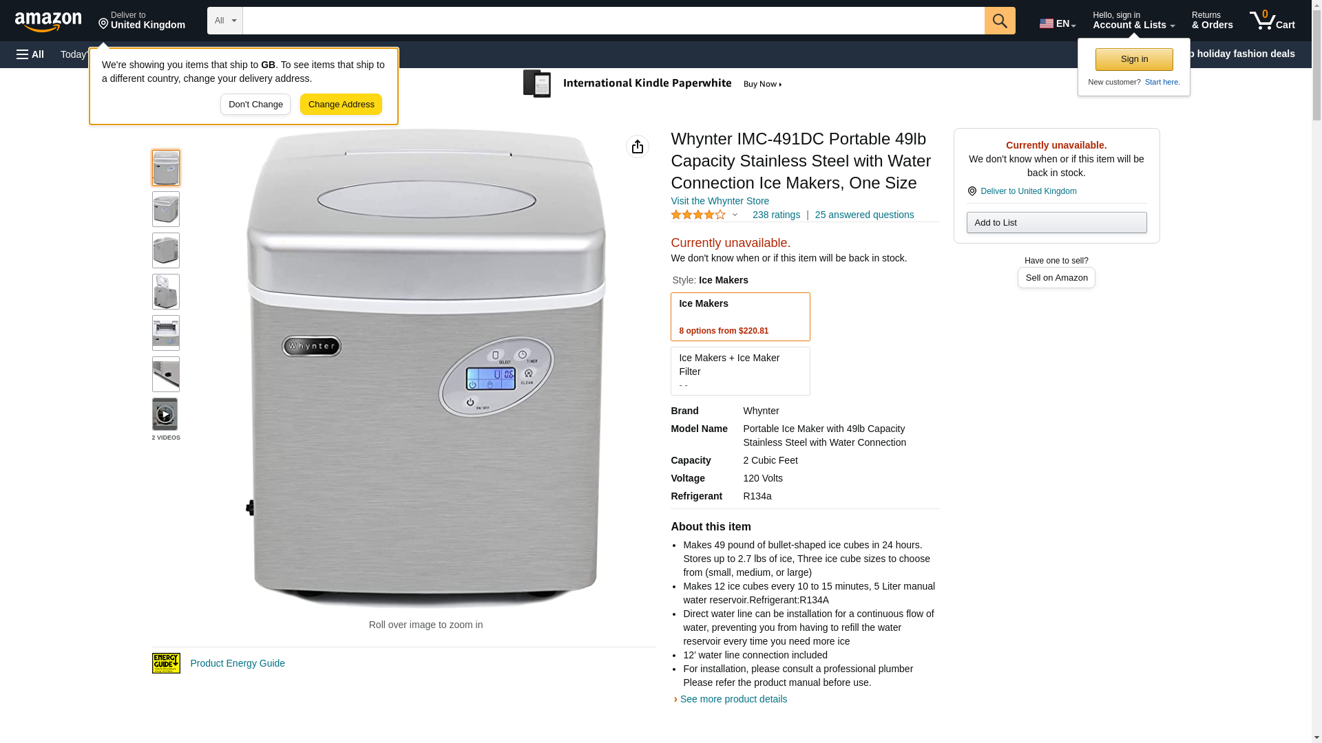 Whynter IMC-491DC Portable 49lb Capacity Stainless Steel with Water Connection Ice Makers, One Size