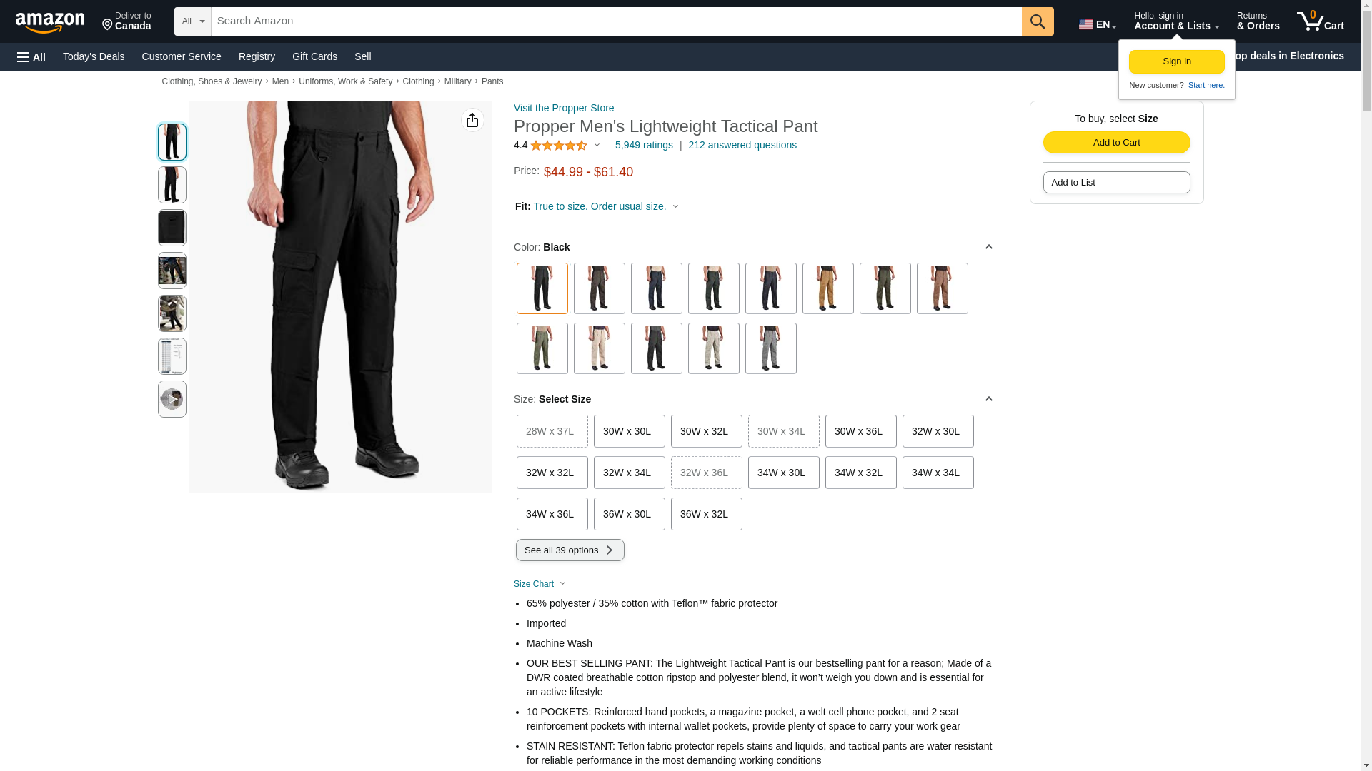 Propper Men's Lightweight Tactical Pants, 30W x 34L, Black