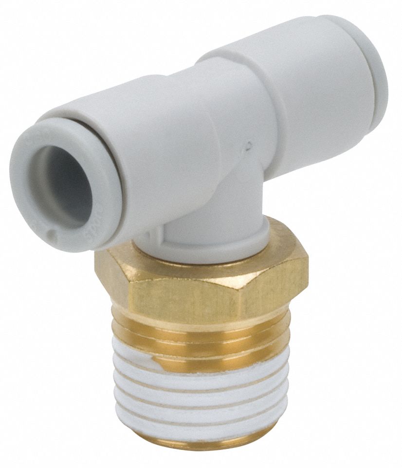 SMC KQ2T10-04AS PBT & Brass Push-to-Connect Tube Fitting with Sealant, Branch Tee, 10 mm Tube OD x 1/2" BSPT Male