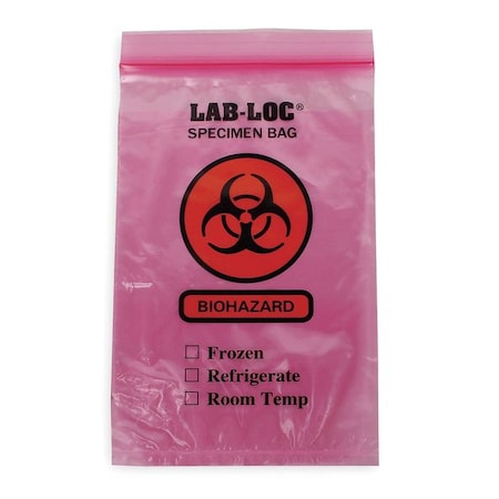 'Specimen Transfer BagColor Red, Material Low Density Polyethylene, Length 9 In., Width 6 In., Thickness 2 milLegend Biohazard, Package Configuration Flat Pack, Bags per Roll/Pack 1000, Package Quantity 1000'