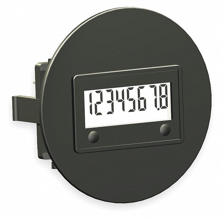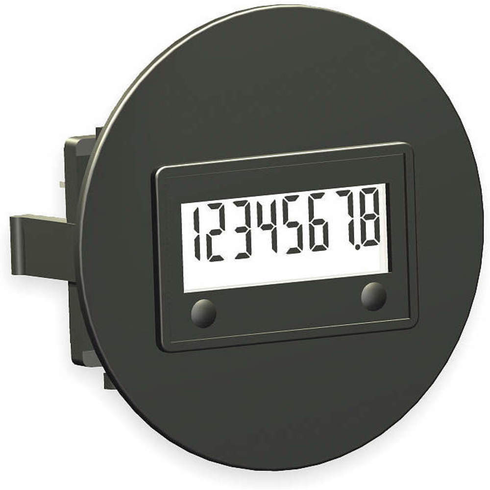 ' Hour Meter, LCD, Time Range 99999999 Hours, Bezel Face 2.21 In., Bezel Face Type SAE Round Flush, Elapsed Time To 999999.9 Hr., Voltage 10 to 300 VDC or 20 to 300 VAC, Hz 50/60, Number of Digits 8, Display Units Hours and Tenths, Bezel to Back Length 0.75 In., Depth 1 In., NEMA Rating 4, 4X, 12, Input Type 10 to 300 VDC or 20 to 300 VAC, Fits 1.45 In X 0.95 In Panel Cutout, Mounting Method Clip, Terminal Type 1/4 In Spade Connector '