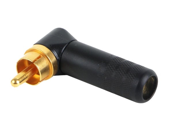 Switchcraft's right-angle RCA plugs features an easy-to-assemble three piece construction: a handle, insulator and plug assembly. The plug features a solid-pin design and large solder terminals that make termination faster and easier. The reduced profile makes it perfect for use behind equipment where space is at a premium. The larger cable clamp and handle will accommodate a variety of cable sizes. Specifications<strong>Electrical</strong>Contact Resistance (typical *D.O.M.J.): <0.20 ohmsDielectric Withstand Voltage: 500VAC (minimum)Insulation Resistance @ 500VDC: 2,000 megohms (minimum)Insulation Resistance (after MIL-STD-202 Salt Spray):1,000 megohms (minimum)Working Voltage: 250VAC, 140VDCCurrent Carry @ Working Voltage (typical *D.O.M.J.):6.0 Amps <strong>Mechanical</strong>Insert/Withdrawal Force: Dependent On Mating JackTemperature Range: -40°C to +85°CU.L. Component Recognition File No.: E118169Life: Dependent On Mating JackMaximum Cable Size: .285” diameter <strong>Material</strong>Pin: Copper alloy, nickel-plated or gold-platedSleeve: Copper alloy, nickel-plated or gold-platedHandle: Copper alloy, nickel-plated or black epoxy finishedCable Clamp: C.R.S., electrotin-platedInsulator: Rigid plastic <strong>Features & Benefits:</strong>Solid center conductorHigh quality appearanceLarger cable clamp provides better strain relief for large cablesLonger cable clamp for easier plug assembly and more room for solder connectionKnurl on the back of handle provides erognomic gripping surface to tighten plugLonger handle for improved gripping surface and easy plug withdrawal from jack3502RABAU has gold-plated plug finger and black epoxy finished handle <