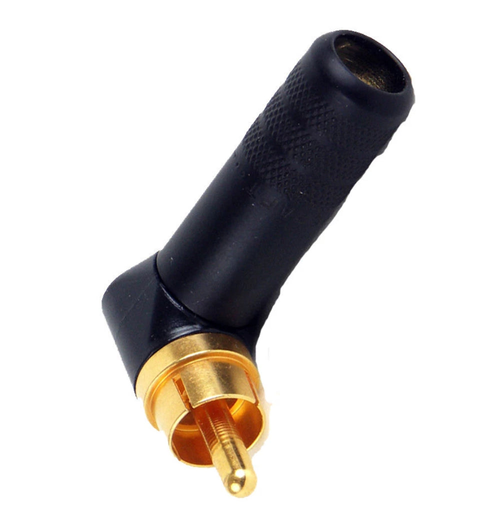 (4 Pack) Switchcraft 3502RABAU Right Angle 90° Gold Phono RCA Plugs, Black Body