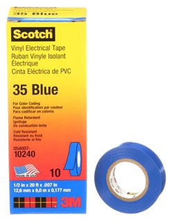 3M 35-BLUE-1/2 Tape; Color Coding; Electrical; Vinyl; Blue; 20 ft.; 0.50 in. (100 pieces)