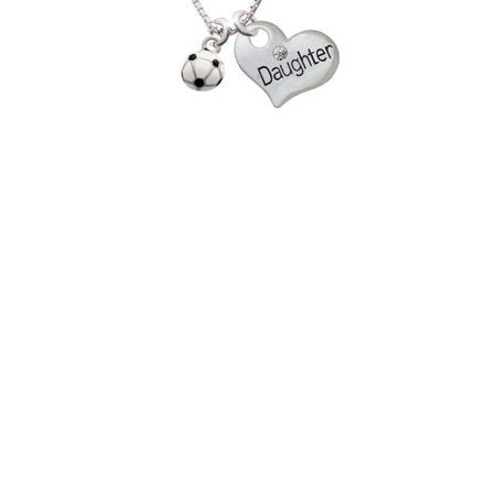 Silver Tone Mini Enamel Soccerball Daughter Heart Necklace. Silver Tone, hand enameled charms. Charm size is approx. 0.44 x 0.33 x 0.14 inches (HxWxD) including loop. Family Heart is approximately 0.76 x 0.65 x 0.11 inches (HxWxD). Antiqued on the front with a clear crystal. The back side of the family heart features a antiqued flower design. 1.3mm Box Chain necklace is 18"+2" Extender. Lobster claw clasp. Box Chain is made exclusively for Delight & Co. Gorgeous necklace for all the ladies in your family. We are a family owned company for over 35 years in the U.S.A. PLEASE NOTE: Our products are lead safe, but are not intended for children 14 years and younger.
