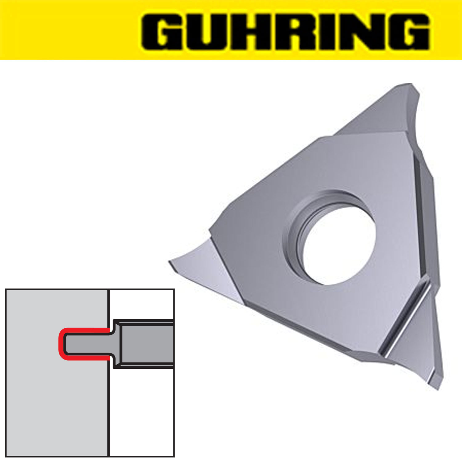 1.50mm Width GUHRING LH Straight Face Grooving System 305 Insert, 2.00mm Max Groove Depth, TiCN Coated 1.50mm Width,2.00mm Max Depth,15mm Min. Circle GA305.0150.020.BA.04.L, TiCN Coated Type GA305 Guhring Grooving, Threading & Parting Off System 305 Carbide Triangle Straight Face Grooving Insert. Guhring Series No. 25629 Order Code 12.001 Made in Germany, Guhring Part #9256290120010