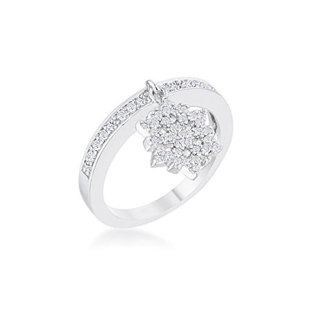 0.35ct CZ Rhodium Plated Simple Classic Charm Ring With Round Cut Cubic Zirconia In A Pave Setting In Silvertone With Holiday Snowflake Charm