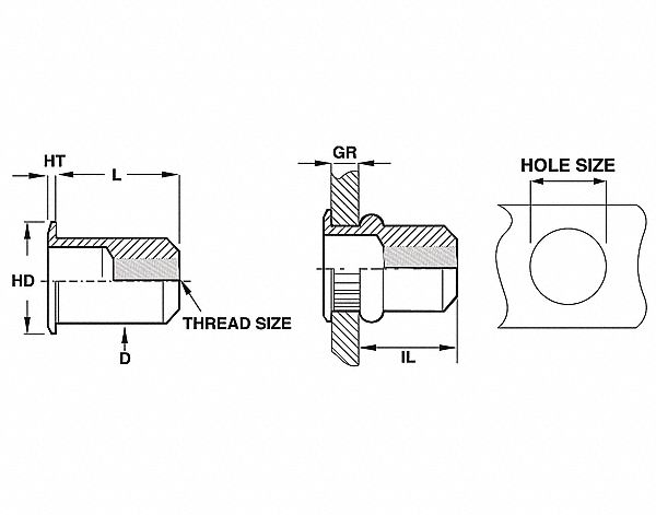 RIVET NUT, SMALL FLANGE/ KNURLED BODY/CLOSED END, 6.6 MM MAX GRIP, ZINC YLW, M6 X 1.0, STEEL, PK 40