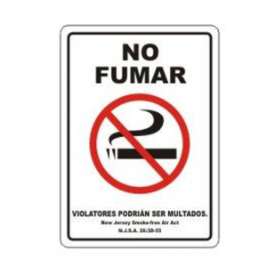 No Fumar Violatores Podrian Ser Multados New Jersey Smoke Free Air Act (No Smoking Violators Are Subject To Fine New Jersey Smoke Free Air Act) (W/Graphic) - Spanish Only 14" x 10" - MSSM524VA - Jendco Safety Supply