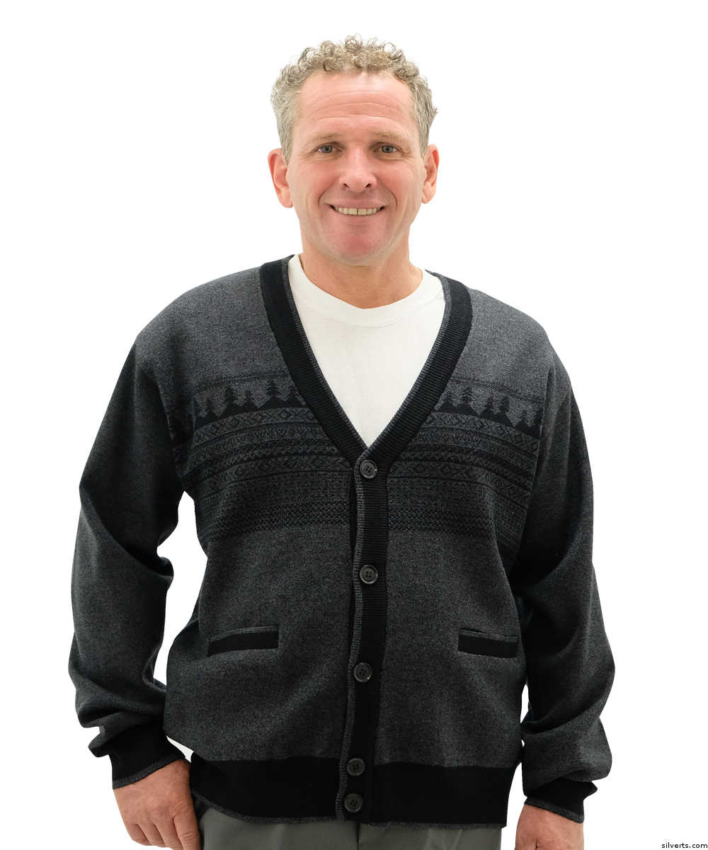 Silverts 503700602 Quality Print Cardigan Sweater with Pockets for Senior Men - Grey, Medium