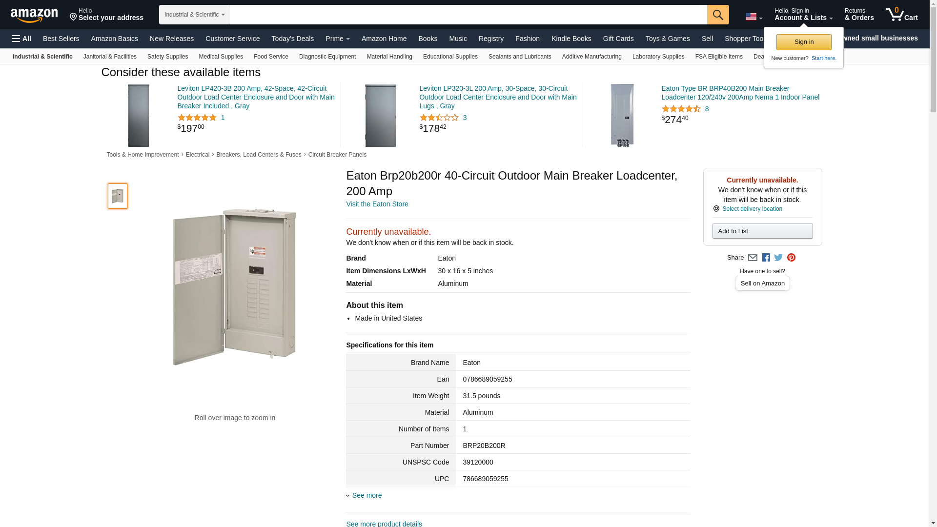 Eaton Brp20b200r 40-circuit Outdoor Main Breaker Loadcenter, 200 Amp