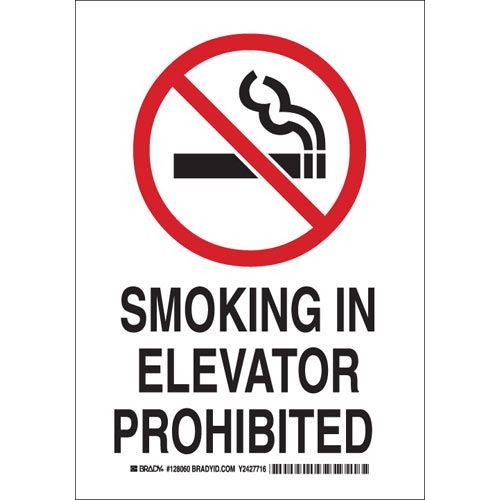 Brady 128058 Smoking In Elevator Prohibited Sign - Non-reflective Aluminum - Black/Red on White - 10 x 7
