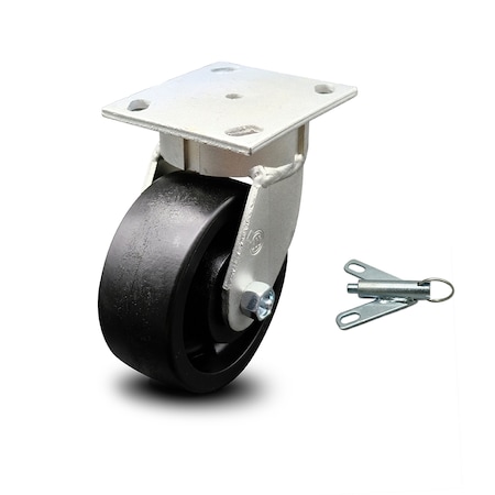 Kingpinless Glass Filled Nylon Swivel Top Plate Caster w/5" x 2" Black Wheel & Bolt on Swivel Lock - 1250 lbs Capacity/Caster - Service Caster Brand