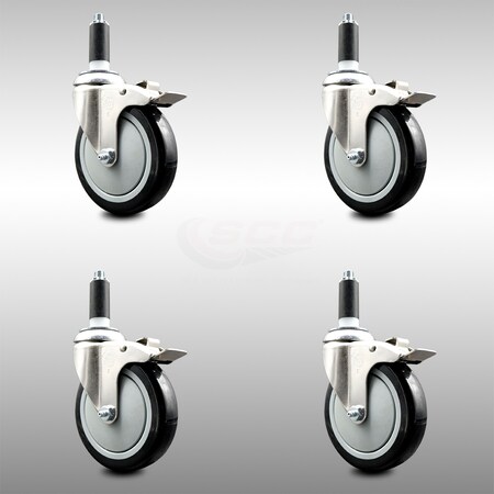 Service Caster Brand 5 Inch 316 Stainless Steel Light Duty Swivel Expanding Stem Caster Set of 4 Black Polyurethane Caster Wheels and 1” Stem–1,400lbs. Total Cpty–Casters with Total Locking Brakes