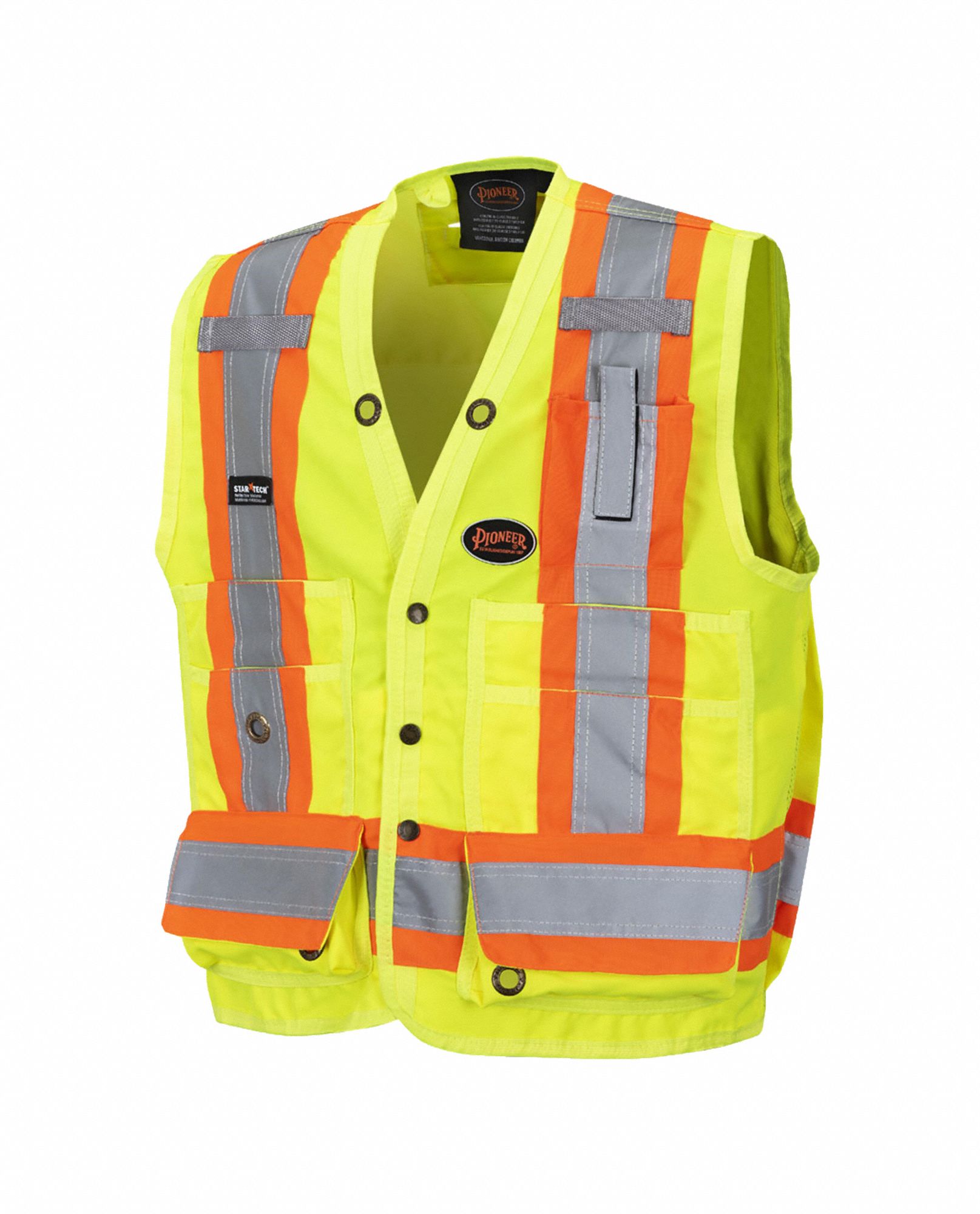 Pioneer Lightweight Durable Hi Vis Surveyor Safety Vest, Multi-Pocket, Snap Button, Yellow-Green, S, V1010140-S
