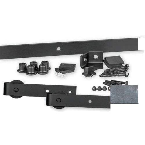 142 Flat Track 7' Single Slide Hardware Kit with 402 Hanger - Unfinished. Retail Hardware Kit includes: 2 Flat Track Hangers with Mounting Hardware, 1 Flat Track with 5 Spacers and 5 Track Mounting Screws, 2 Door Stops with Cushions, 2 Anti-Jump Blocks, 1 Bottom Fin Guide, and Easy-To-Follow Instructions.