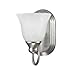 Windgate 1-Light Brushed Nickel Wall/Bath Sconce easily fits with your home's decor. This steel and white alabaster glass fixture combines function and style. This fixture extends 8 in. from the wall.