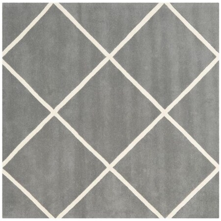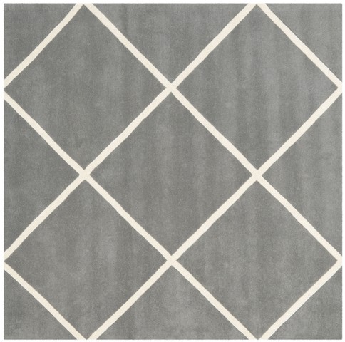 SAFAVIEH Chatham Collection 7' Square Dark Grey/Ivory CHT720D Handmade Diamond Trellis Premium Wool Area Rug