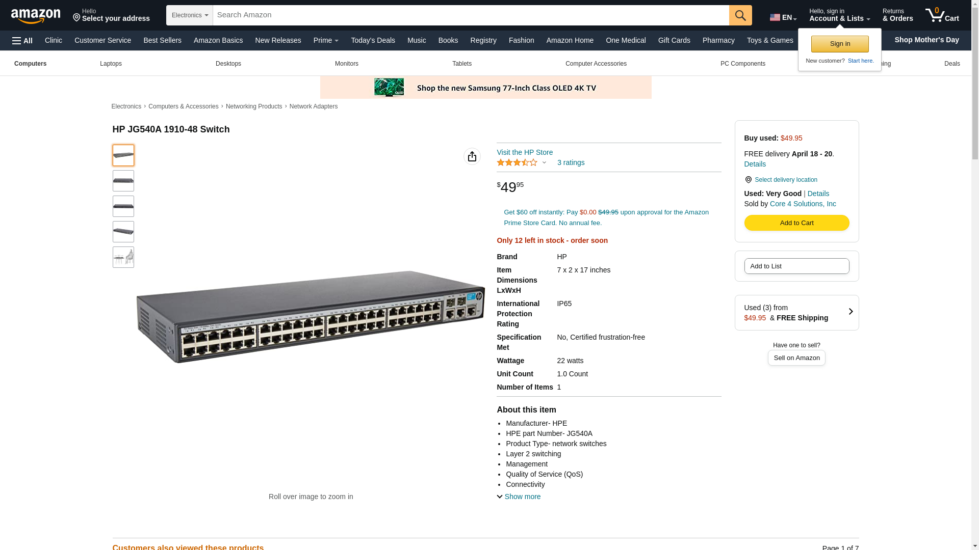 HP 48-Port L3 Switch, Managed (JG540A#ABA)
