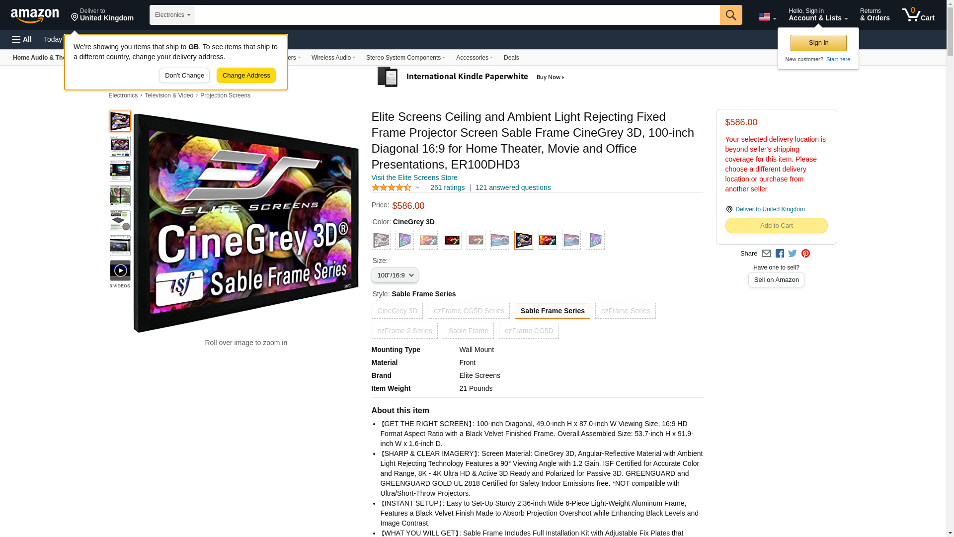 Elite Screens SableFrame ER100DHD3 Projection screen - wall mountable - 100" (100 in) - 16:9 - CineGrey 3D - velvet black