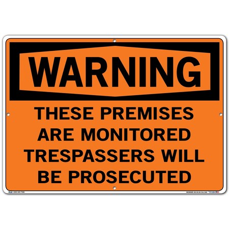 Vestil SI-W-26-E-AL-040 Sign-Warning-26 20.5X14.5 Aluminum .040, THESE PREMISES ARE MONITORED TRESPASSERS WILL BE PROSECUTED