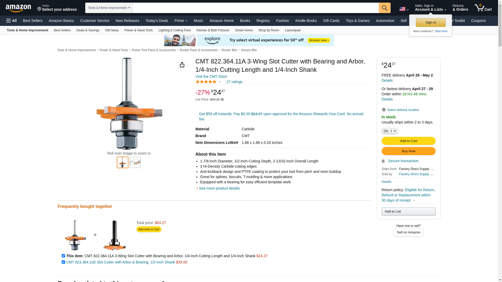 Order 822.364.11A by CMT 1/4" Router 3-Flute Slot Cutter - US Mega Store