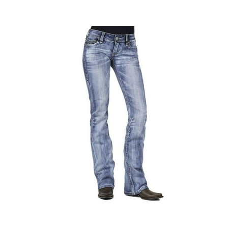 Womens Stetson Jeans: Womens Stetson Western Denim. Turn On That Country Girl Charm! New Contemporary Boot Cut Jeans. Sits Low on the Waist. Slim Fit Thigh and Knee with A Boot cut Leg Opening. Decorative Stylized "V" Stitching on Back Pockets and Coin Pocket. Stetson Branded Buttons, Rivets and Zippers. 98% Cotton, 2% Spandex. 11-054-0818-0705 BU