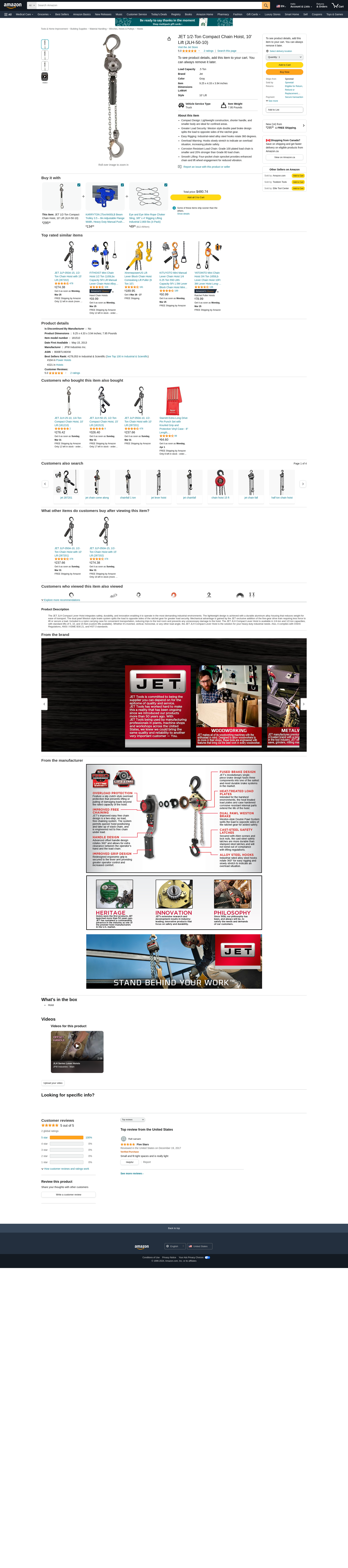 Jet JET181510 Systems JLH-50-10, JLH Series 1/2 Ton Lever Hoist, 10' Lift (181510)