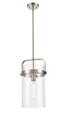 Innovations Lighting 413-1SM-SN-G413-1S-8CL Pilaster - 1 Light Stem Hung Pendant in Industrial Style-17.13 Inches Tall and 9.38 Inches Wide, Finish Color: Satin Nickel, Glass Color: Clear