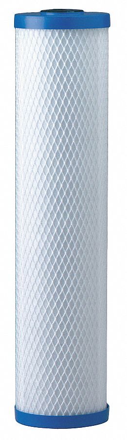 'Carbon Filter Cartridge, 5 Microns, Filter Media Carbon Block, Height 20 In., Outside Dia. 4-5/8 In., Flow Rate 4 gpm, Max. Temp. 180 Degrees F, Reduces Chlorine, Taste, Odor and Sediment, Application Drinking Water, Inside Dia. 1 In., Service Life 40, 000 gal., EP Series, For Use With 20 In. Big Blue Housings, Standards NSF 42'