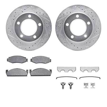 Dynamic Friction Company Front Brake Rotors-Drilled and Slotted-Silver with 5000 Advanced Brake Pads includes Hardware 7512-42009