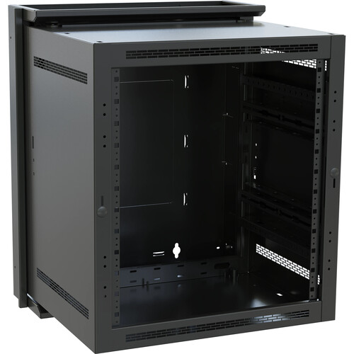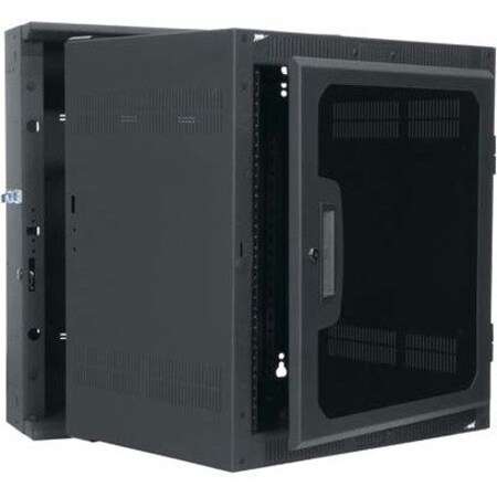 Specify a DWR wall cabinet to provide easy rear access while keeping floor areas clear. This pivoting sectional wall cabinet is ideal for systems in both secured and non-secured areas.Features. Robust welded steel construction with Seismic certification. Patented Tool Free Quick-Mount system for center section mounting. Center section swing is reversible and can be both key locked and padlocked. Center section is keyed differently from optional front door for security. Designed for choice of active or passive cooling. Includes factory assembled plexi doorSpecifications. Finish Type - Textured Black Powder Coat. Dimension - 22.3 D x 23.4 W x 24.56 H in.. Capacity Weight US - 200. Rack Units - 10Technical Information. Rack rail Type - 10-32. Seismic Load Capacity - 140. UL Load Capacity - 200. Material - Steel. Mounting - Horizontal. Seismic Certified - 163. Compatible - Front Door Options Top Fans Vent Blockers Vertical Power Distribution IP Power Control and Management Horizontal Power Distribution Power Accessories Horizontal Cable Management Rack shelves Adjustable and Sliding Rack shelves Rack mount Storage Blank Panels Vent Panels Security Options Thermal Management Rack mount Computer Products Lighting Connector Panels Rack rail Hardware and Fasteners