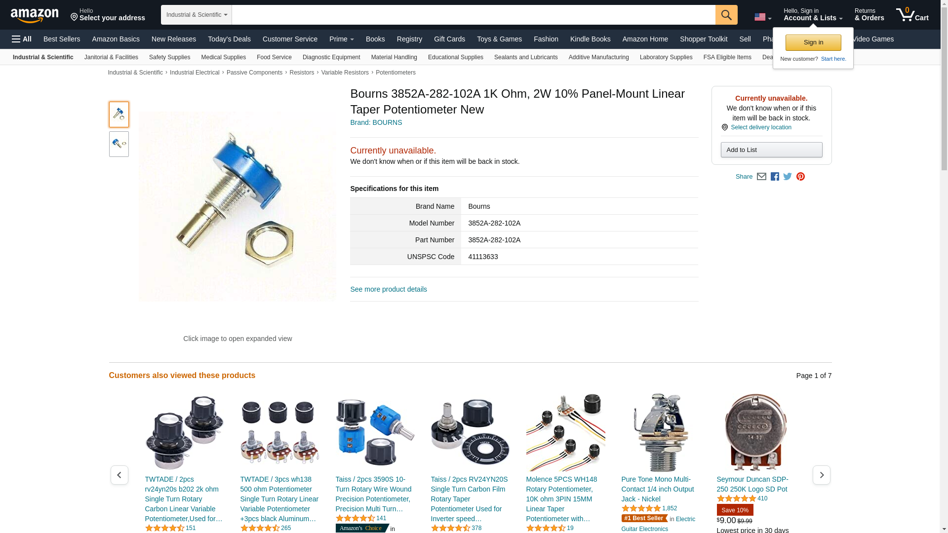 ![]() Onlinecomponents.com | 3852A-282-102A | 1 | 1 | 1 | 1 @ $7.21, 5 @ $6.70, 12 @ $6.01 |