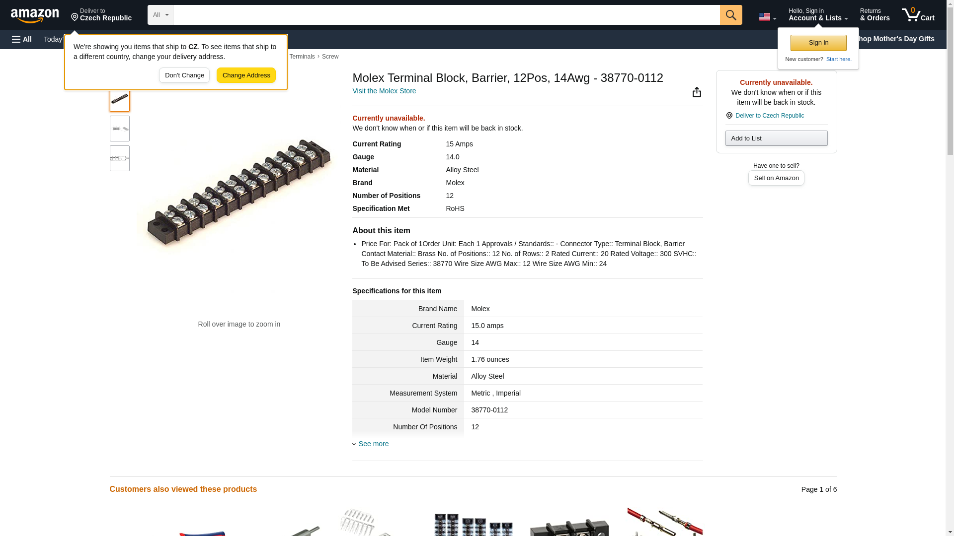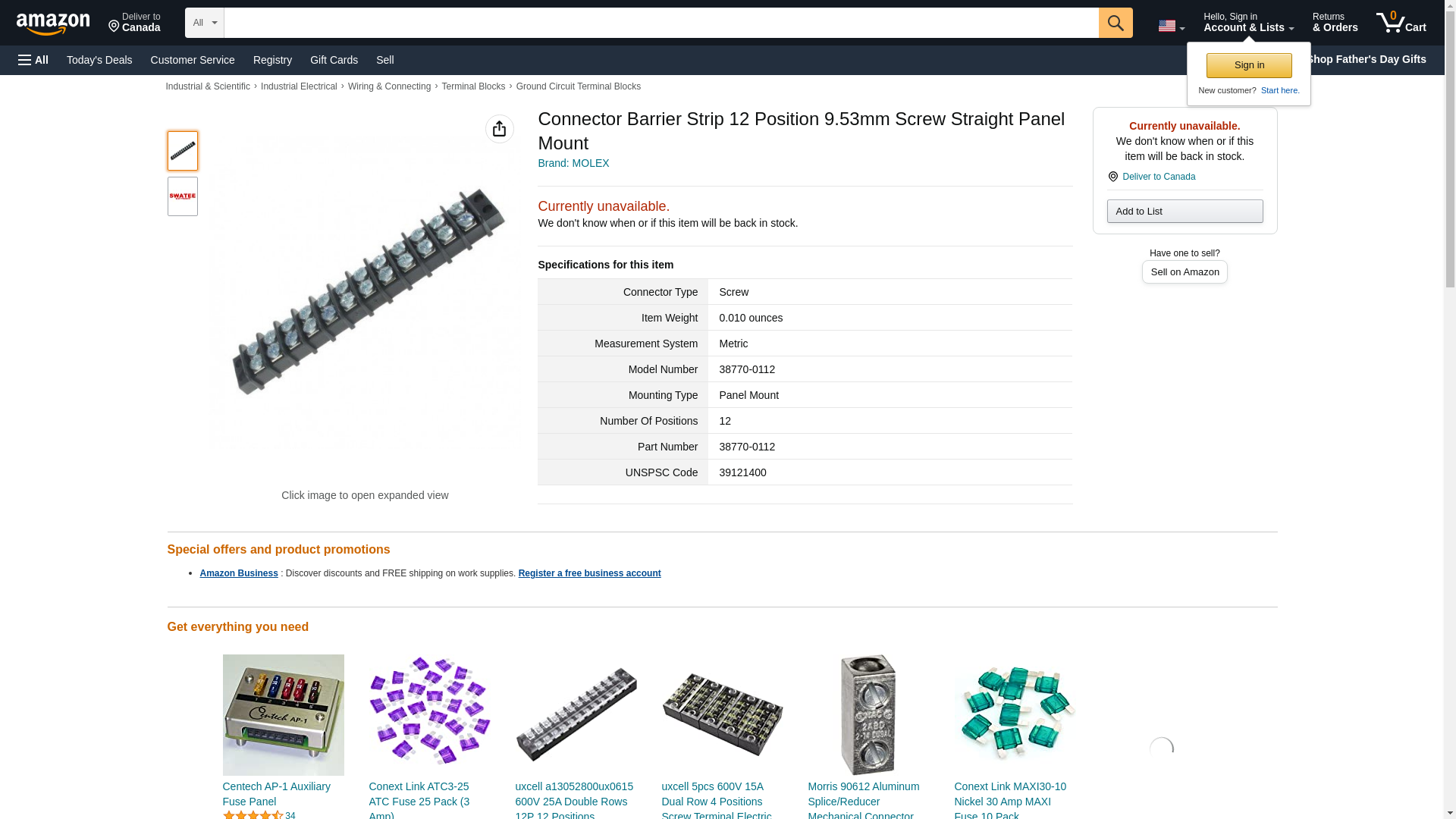 Molex Terminal Block, Barrier, 12Pos, 14Awg - 38770-0112