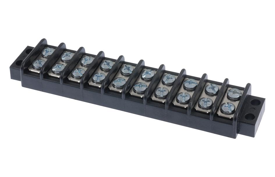 TERMINAL BLOCK, BARRIER, 10POS, 14AWG; No. of Rows:2 Row; No. of Positions:10Positions; Wire Size AWG Min:22AWG; Wire Size AWG Max:14AWG; Pitch Spacing:11.11mm; Rated Current:15A; Rated Voltage:300V; Product Range:38780 Series RoHS Compliant: Yes