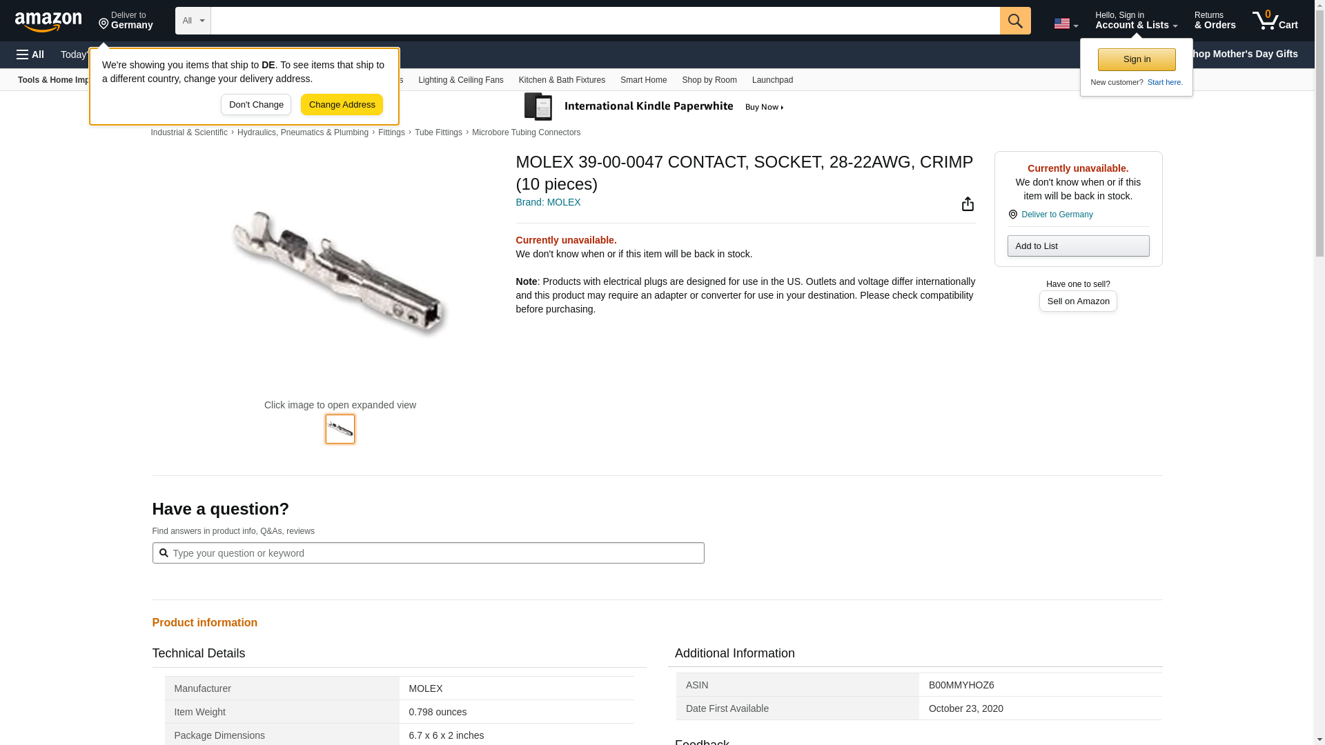 | Waldom | MOLEX 39-00-0047 | 900 | 283705 | 100 | 900 @ $0.06, 4400 @ $0.06, 9000 @ $0.06, 16000 @ $0.06, 25000 @ $0.05, 50000 @ $0.05, 100000 @ $0.04, 250000 @ $0.04 |